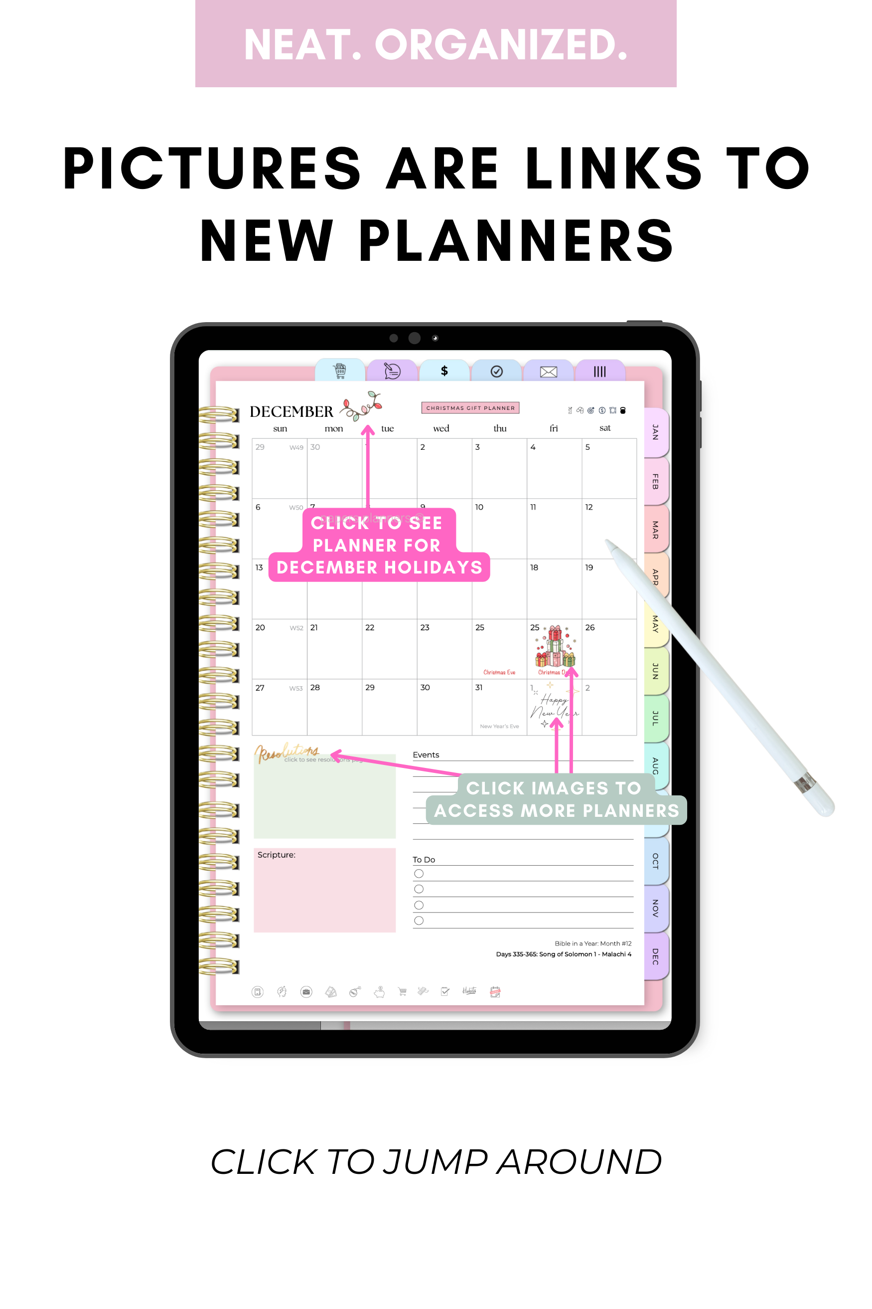 This is a fully clickable, interactive digital planner designed for tablet or phone use. Every page is linked for easy navigation, and the entire planner was created from scratch by me. If you ever have an issue, just email me — I’m happy to help.