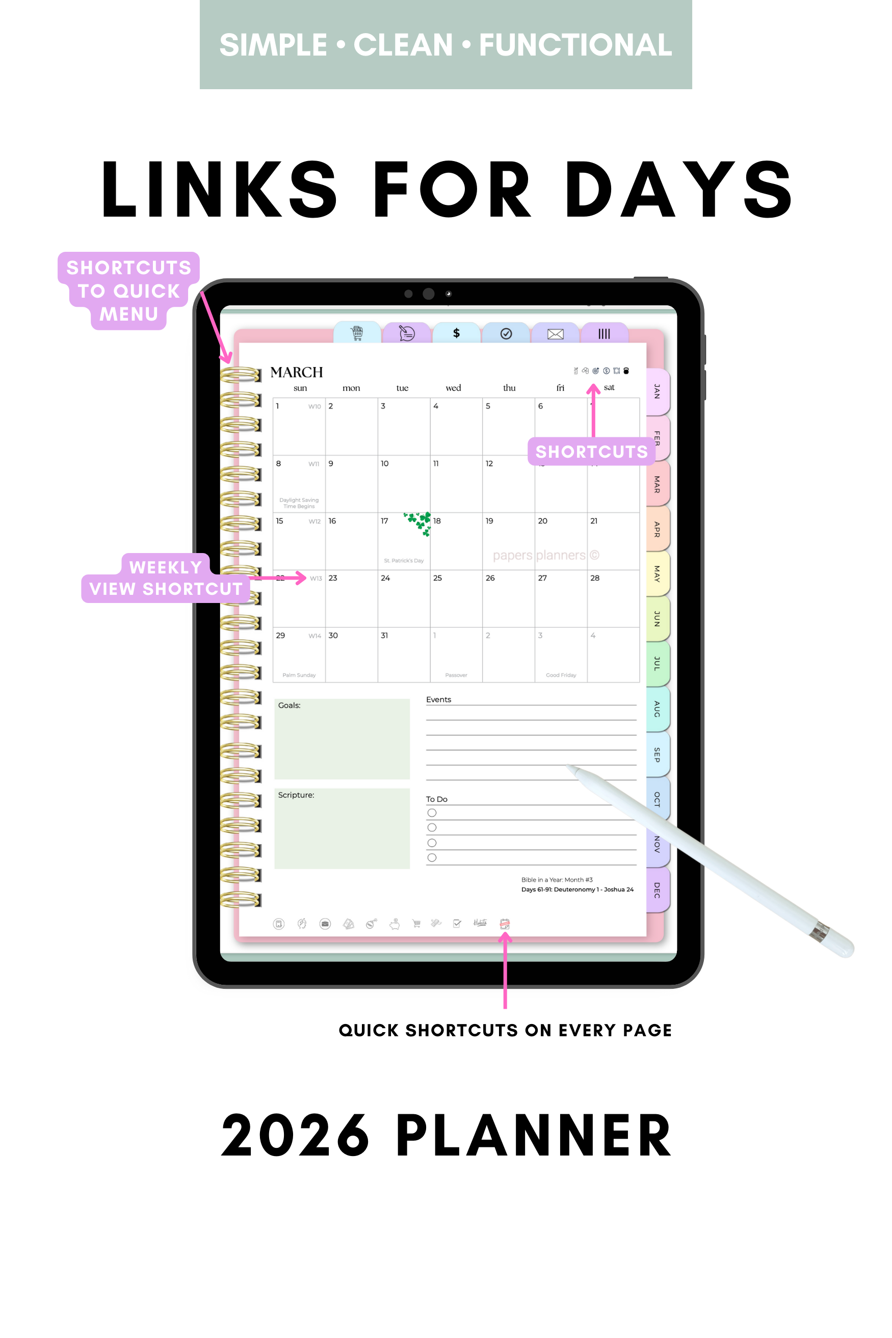 2026 Interactive Digital Planner (Clickable PDF)
