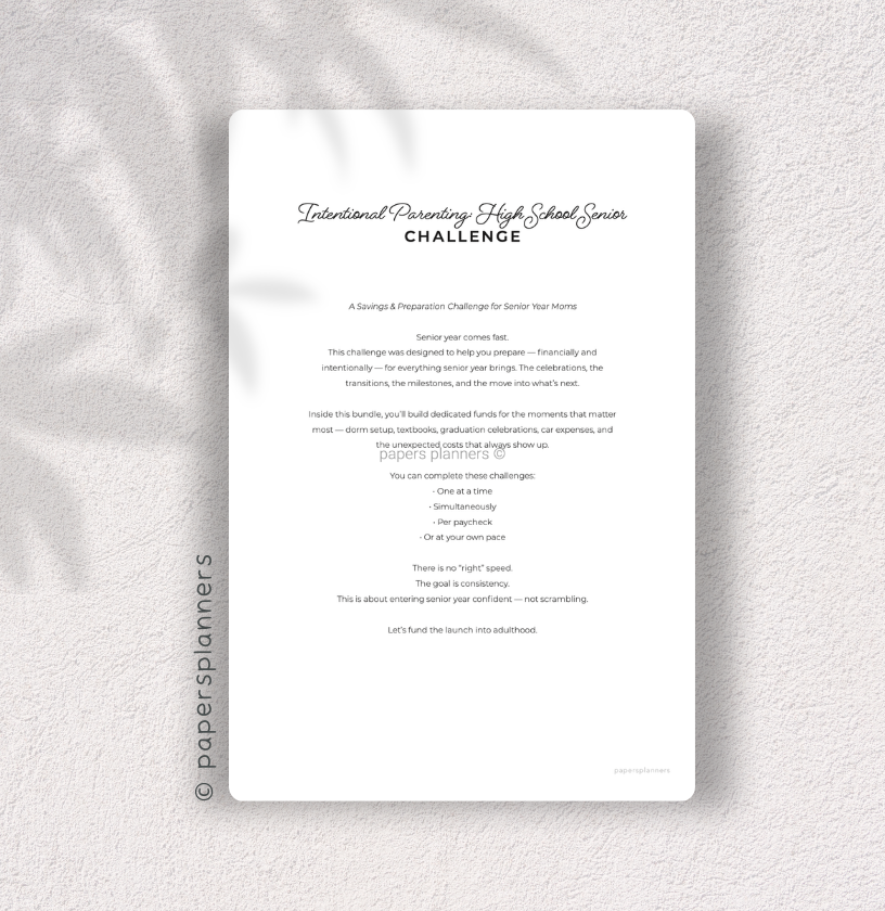 The Intentional Parenting Challenge Kit was designed to help you prepare — financially and thoughtfully — for everything senior year brings.